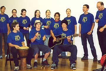 On 1 July, high school students in Vaduz sang songs about peace and refugees at the inauguration of paintings local children made on the theme of peace at the National Museum of Liechtenstein. © Fluechtlingshilfe Liechtenstein