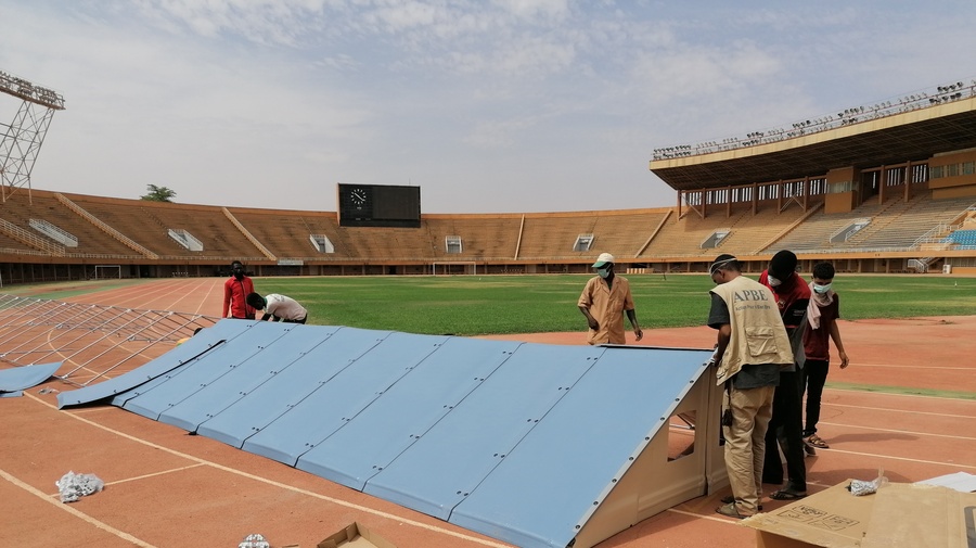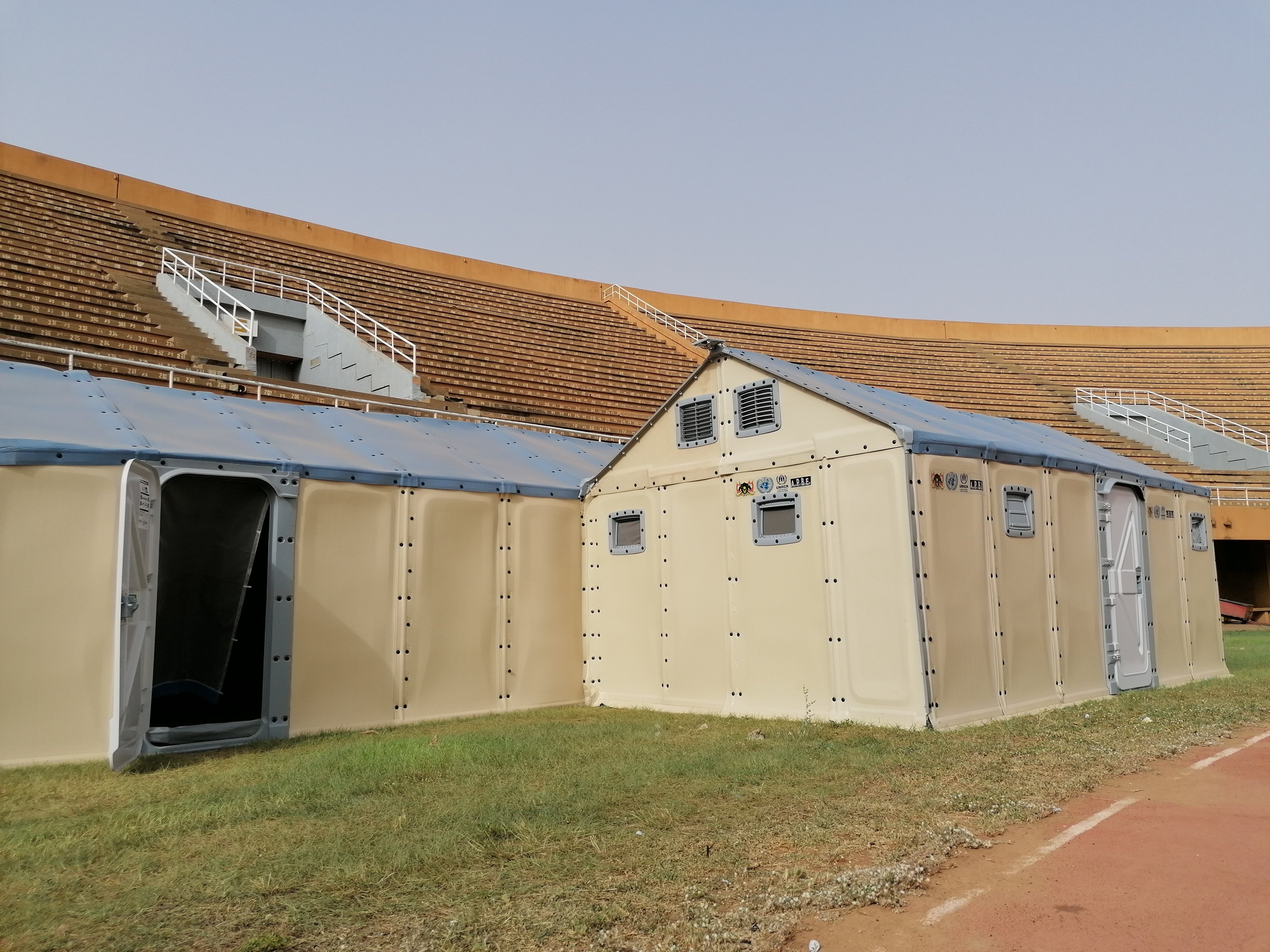 Depuis le 7 avril, 58 unités de logement habituellement utilisées dans les camps de réfugiés sont en cours d’installation dans l’enceinte du Stade du Général Seyni Kountché à Niamey afin d’augmenter les capacités d’accueil et d’isolement des patients potentiellement infectés au Covid-19 dans la région.