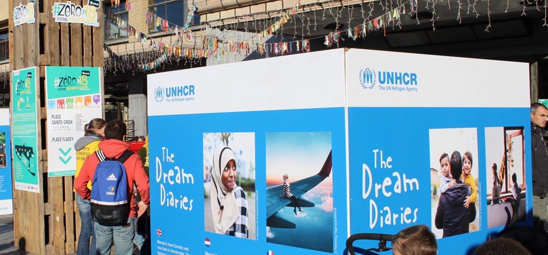 Plus de la moitié des réfugiés dans le monde sont des enfants. Le HCR a établi un nouveau partenariat avec le festival #Zéro>18 en étant présent avec diverses activités pour initier les enfants à la problématique des réfugiés d'aujourd'hui. Beaucoup d'entre eux ont été fascinés par la jeune Syrienne Sidra qui leur a fait faire une visite virtuelle du camp de réfugiés jordanien de Za'atari. Non seulement les lunettes de réalité virtuelle ont été un succès, mais l'exposition " The Dream Diaries " a également remporté un succès populaire auprès des enfants. Après avoir visité l’exposition, plusieurs enfants sont venus au stand HCR pour dessiner leurs propres rêves et souhaits pour ce monde. De plus, ils ont appris ce qu'est un réfugié à l'aide de diverses cartes de jeu-questionnaire.