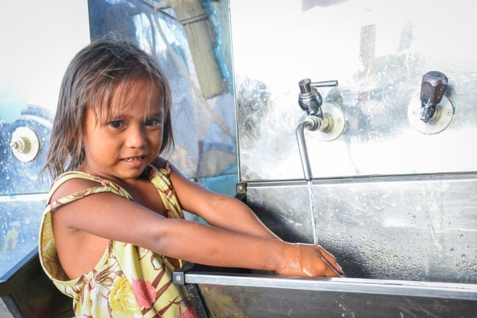 Une jeune Syrienne se lave les mains dans le camp de réfugiés de Za'atari. © HCR/Mohamad al-Taher