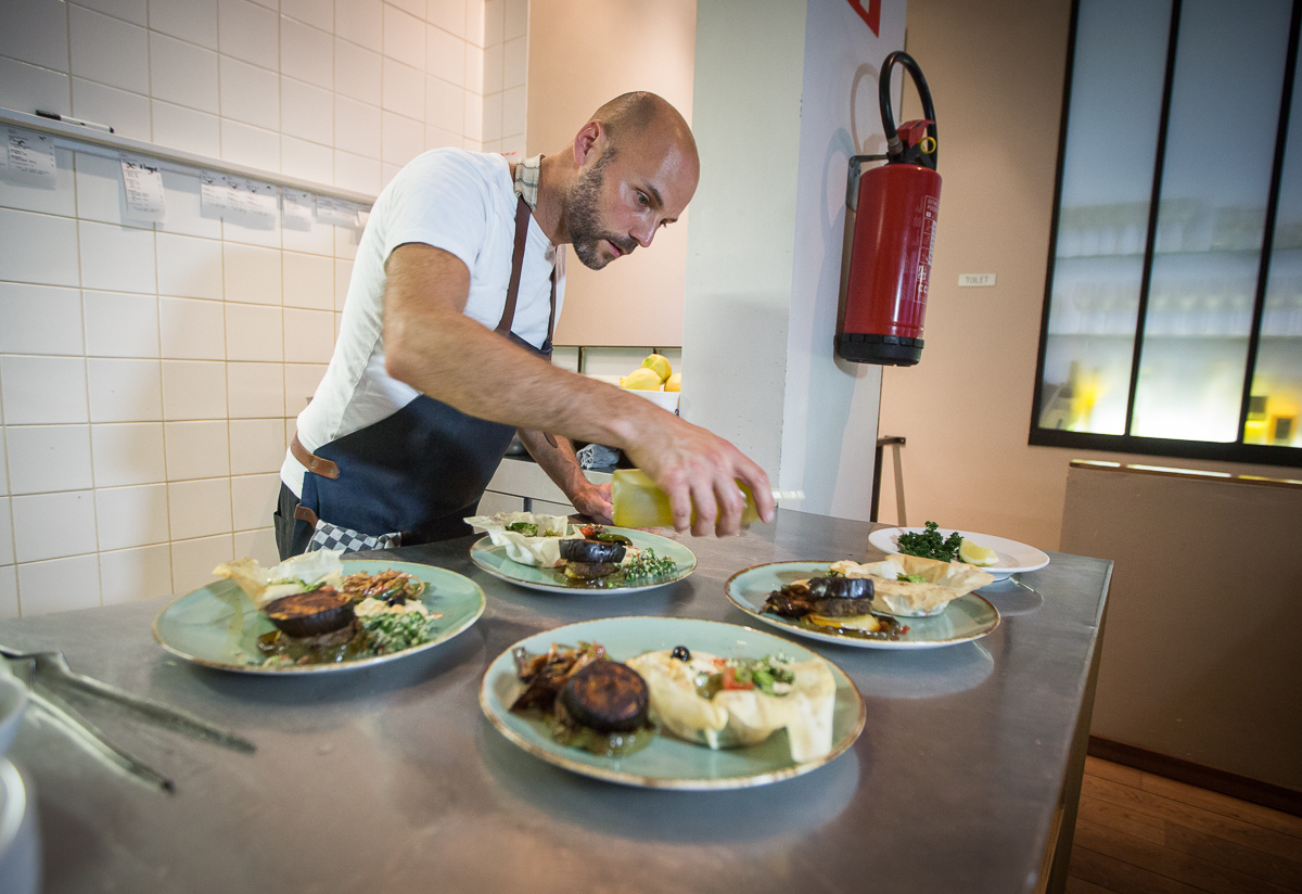 Le restaurant Racine à Ixelles était complet jusqu'à la fin du Refugee Food Festival, grâce à la cuisine gastronomique du cuisinier réfugié irakien Ahmed.