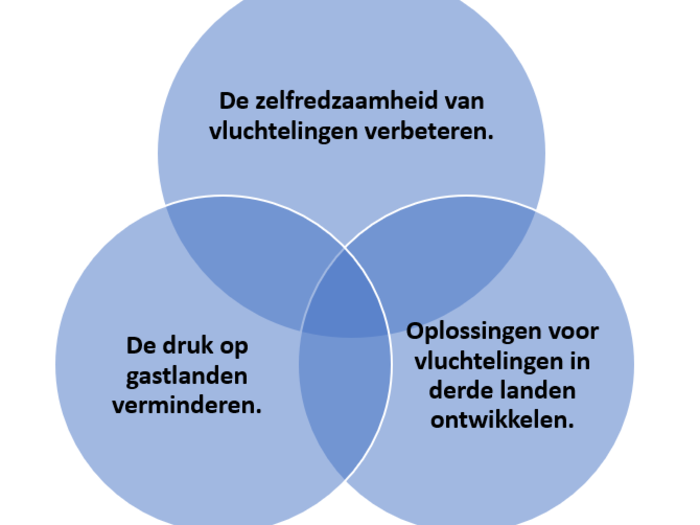 Complementaire toegangswegen kunnen de toegang tot bescherming en/of een oplossing vergemakkelijken, als aanvulling op de drie traditionele duurzame oplossingen van UNHCR: vrijwillige terugkeer, integratie en hervestiging. Complementaire toegangswegen dragen rechtstreeks bij aan een eerlijke verdeling van verantwoordelijkheden en aan de verwezenlijking van drie doelstellingen van het Global Compact on Refugees.