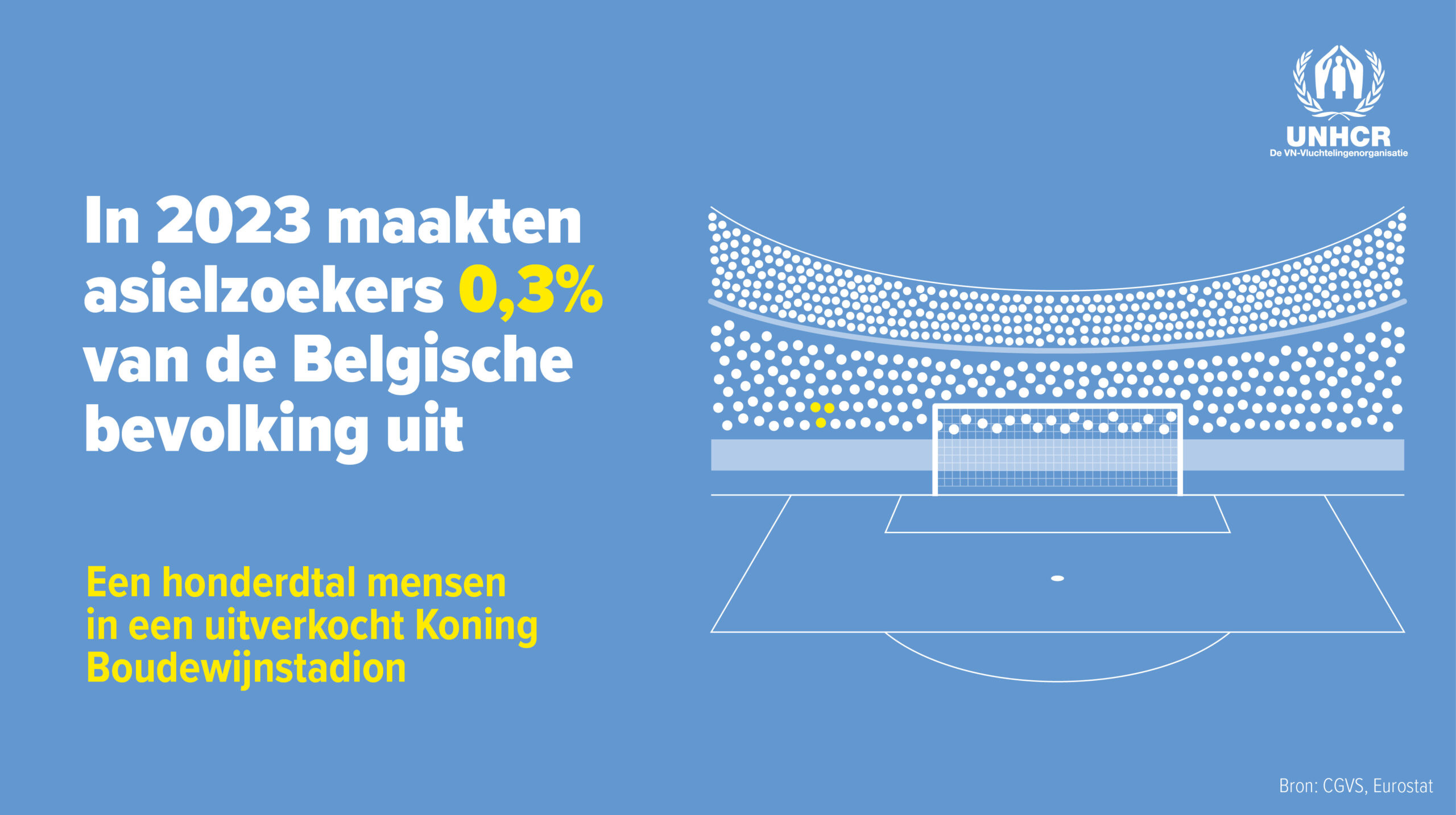 Als we het aantal asielzoekers vergelijken met de totale Belgische bevolking van 11,7 miljoen, zien we dat het in feite om een zeer kleine groep gaat. In 2023 dienden in België 29.260 mensen een eerste asielaanvraag in, hetzij 0.3% van de totale bevolking. Ter vergelijking: in een vol Koning Boudewijnstadion gaat het slechts om een honderdtal mensen op een totaal van 50.000.