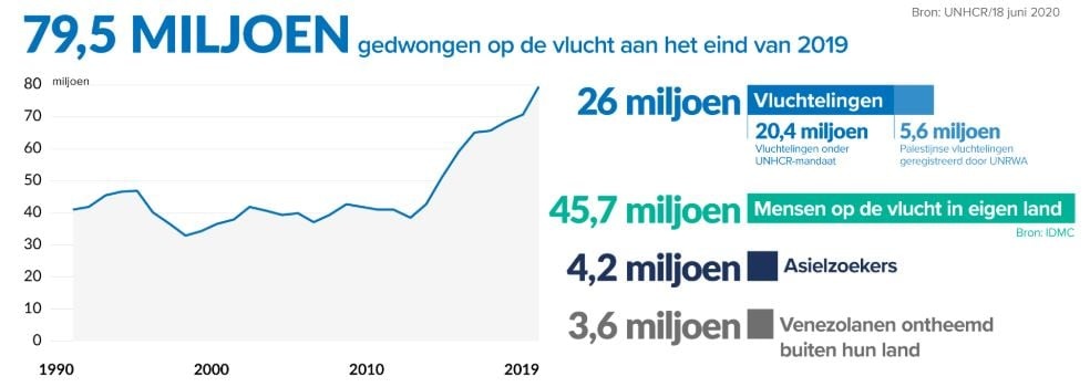 Op dit moment zijn wereldwijd meer dan 79,5 miljoen mensen op de vlucht. Dat is het hoogste aantal sinds het einde van de Tweede Wereldoorlog. Je vindt het overzicht op dit lesblad.