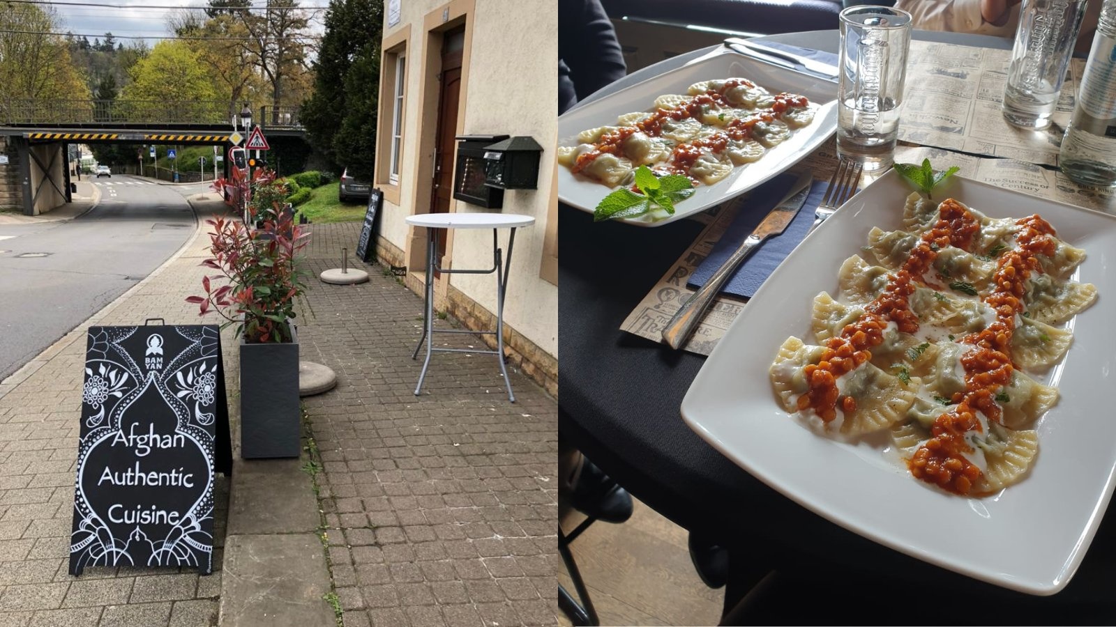 Bamyan, dat zijn naam ontleent aan een historische stad en provincie in de besneeuwde bergen van Centraal-Afghanistan, is een familierestaurant dat authentieke Afghaanse gerechten serveert aan de oevers van de rivier de Alzette in Luxemburg. Het uitnodigende, zonovergoten terras biedt een idyllisch uitzicht op de skyline van Luxemburg, de rivier en een nabijgelegen viaduct - perfect voor een warme zomeravond. Binnen geven de rustieke bakstenen gewelven en moderne kunstwerken het restaurant een stijlvolle, gastvrije uitstraling. Bamyan, het eerste Afghaanse restaurant in Luxemburg, werd in 2022 geopend door twee echtparen, de Modasirs en Etemadi's, die de lokale bevolking kennis wilden laten maken met authentieke Afghaanse delicatessen. Enkele specialiteiten zijn de Ashak, groentendumplings overgoten met een linzensaus, en de Qabuli, een heerlijke rijstschotel met gemarineerd rundvlees en gekarameliseerde wortelen.