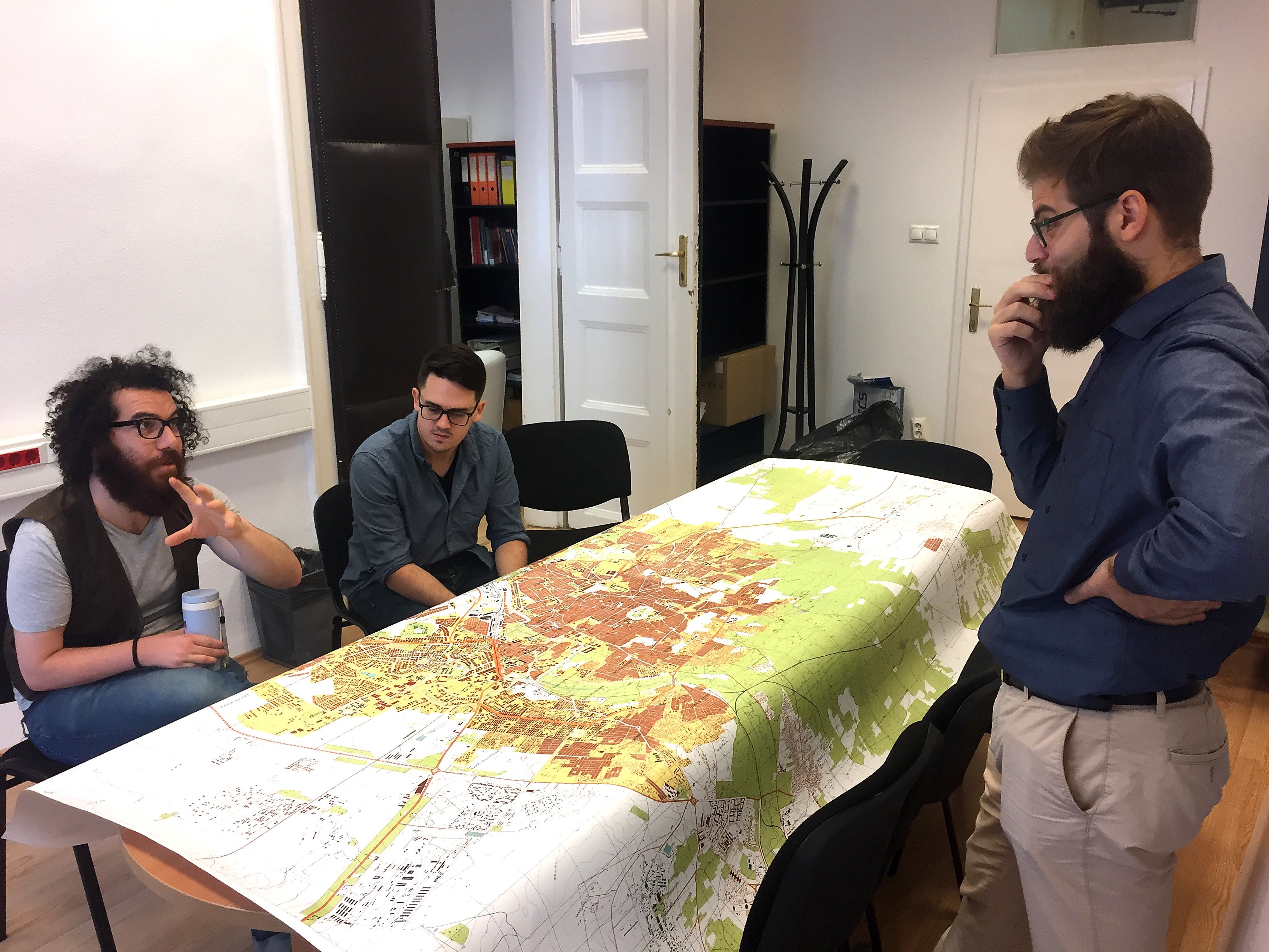 Докато няма мир, при една прибързана реконструкция някои бивши собственици и жители може да останат нечути. А разходите ще бъдат огромни. Въпреки това, както пише на сайта, именно сега трябва да започнем да мислим за бъдещето.„Може да изглежда малко рано да говорим за реконструкция, но колкото по-рано започнем да мислим за този процес, толкова по-успешен ще бъде той.“ В офиса си в центъра на Будапеща Ал-Хакам и стажантите Конър Кусилек, на 25 г., от Северна Каролина, и Абдухалим Албакор, на 28 г., от Хомс в Сирия, са се надвесили над съветска карта на Алепо от средата на 70-те години на миналия век. „Можете да видите всички спортни стадиони и предградията с многоетажни сгради, построени по това време“, казва Абдухалим.