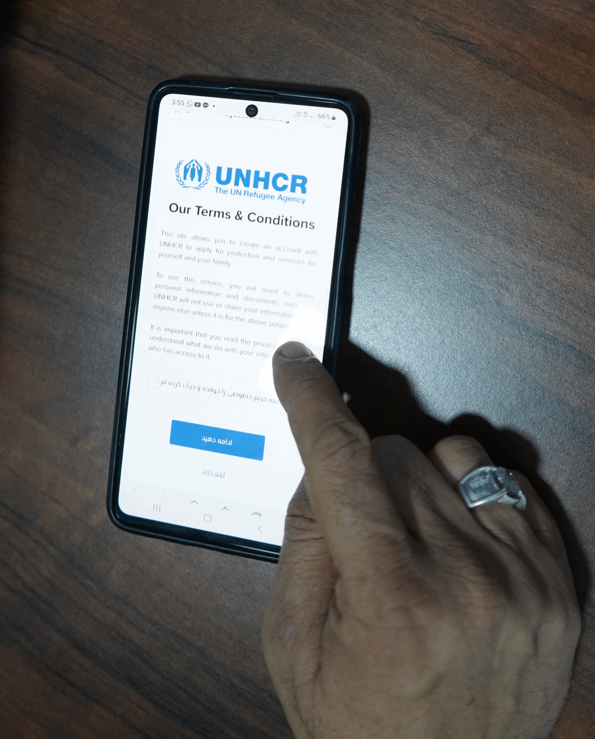 A refugee going through the Terms and Conditions of the My Services Portal before creating their account © UNHCR/Paridhi Jain