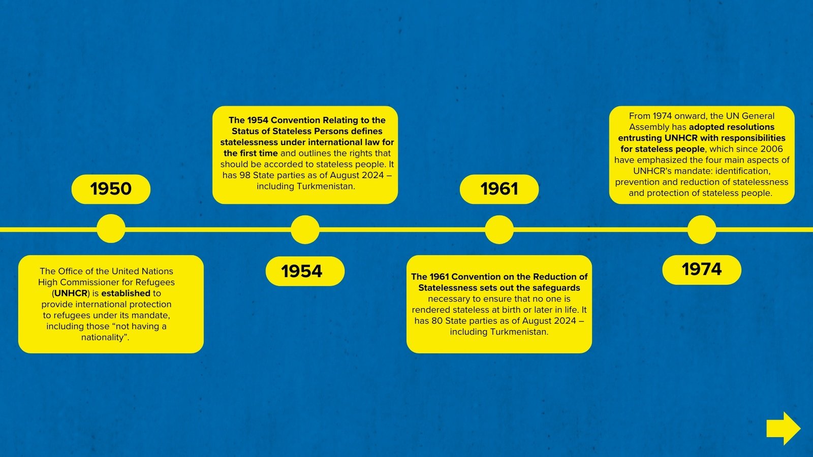In Central Asia, UNHCR promotes alignment of national citizenship and other legislation with international standards, and advocates for Kazakhstan, Kyrgyz Republic, Tajikistan and Uzbekistan to join Turkmenistan and many UN Member States as state parties to the 1954 and 1961 Statelessness Conventions.