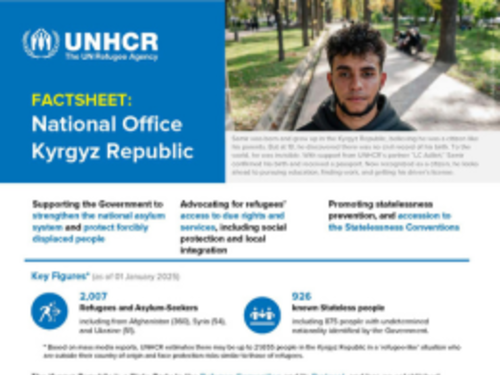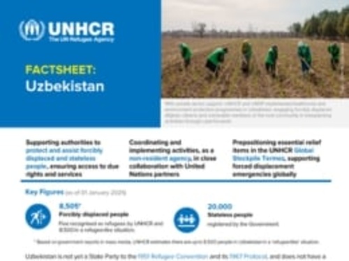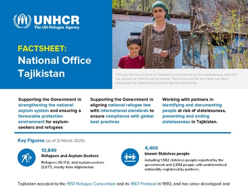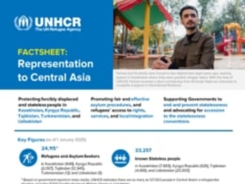 UNHCR publishes country factsheets to keep partners and the public informed about key figures, programmes, and overall priorities in Kazakhstan, the Kyrgyz Republic, Tajikistan, Turkmenistan, and Uzbekistan.