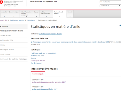 En Suisse, le HCR s’appuie sur les données du Secrétariat d’Etat aux migrations (SEM) et des statistiques en matière d’asile du SEM.