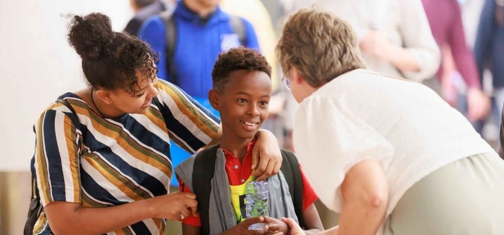 Yohannes, ein äthiopischer Flüchtling, der aus dem Sudan evakuiert wurde, ist wieder mit seiner Mutter vereint und wird von seiner Stiefgroßmutter am Flughafen Brüssel, Belgien, begrüßt. © UNHCR/Olivier van Naemen