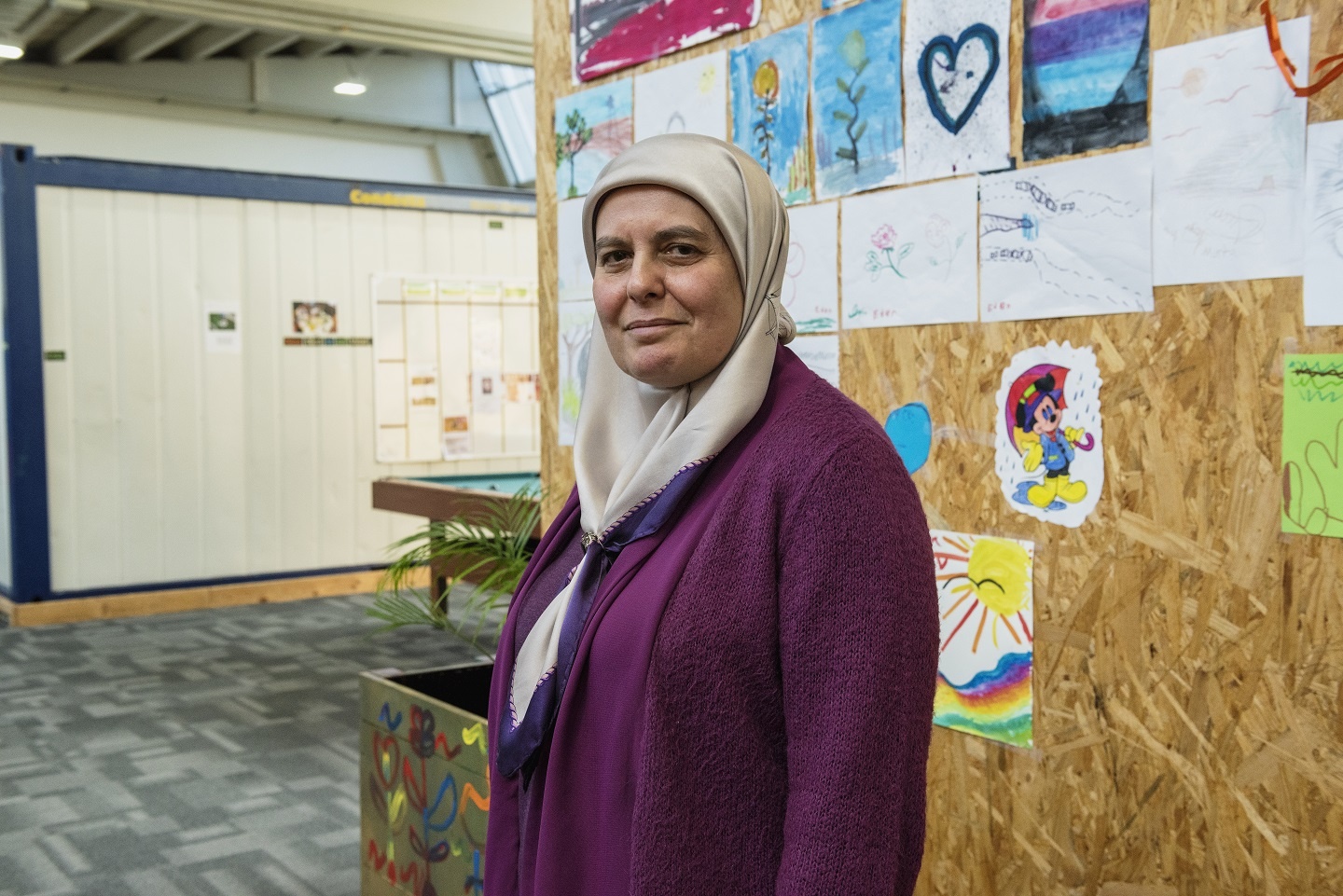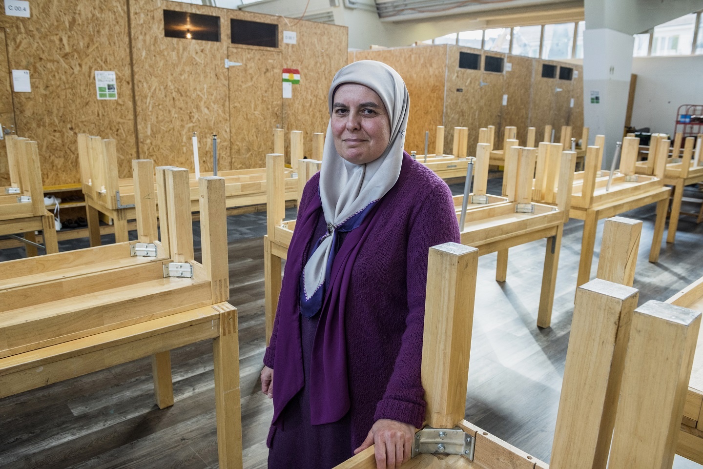 Belkis Osman arbeitet zwei Nachmittage pro Woche im Bundesasylzentrum auf dem Messegelände in Zürich-Oerlikon. Die muslimische Seelsorgerin geht auf die Menschen zu. Sie klopft an die Türen der fensterlosen Zimmer aus Spanplatten, die wie Container in der riesigen Halle stehen. Osman fragt die Asylsuchenden dann jeweils, wie es ihnen geht, was sie gerade tun, ob sie mal draussen waren. „Ich freue mich immer, sie zu sehen“, sagt Amina*, eine junge Irakerin. In der Messehalle wohnen vor allem Frauen, Familien und allein reisende Minderjährige, derzeit rund 140 Personen. Die Halle verfügt über 150 Plätze und dient seit Spätsommer 2018 für ein Jahr als Bundesasylzentrum bis das neue Zentrum auf dem Duttweiler-Areal im Kreis 5 (ab Herbst 2019) in Betrieb ist. Asylsuchende Männer werden dann ebenfalls dorthin ziehen. Heute sind sie noch im Juch-Zentrum in Zürich-Altstetten untergebracht, das jedoch einem neuen Eishockey-Stadion weichen muss.