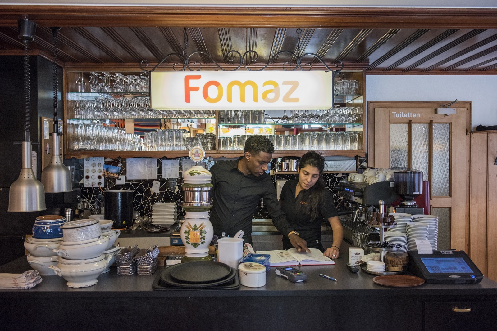 Seitdem ist das Restaurant fester Bestandteil im Altdorfer Alltag geworden. Vor allem zur Mittagszeit ist es mit etwa 40 Gästen meistens voll besetzt. Es kommen vor allem Stammgäste aus der Region. Das Fomaz bietet durchgehend sechs Praktikantenplätze für Flüchtlinge im Bereich Service oder Küche an. Diese Praktika dauern in der Regel ein Jahr. Dazu kommt jeweils ein Ausbildungsplatz pro Bereich. Angeleitet werden die Flüchtlinge von vier fest angestellten Mitarbeitenden. „Ziel ist es, diesen Menschen den Zugang zum Schweizer Arbeitsmarkt zu erleichtern. Die meisten unserer Praktikanten finden im Anschluss an ihre Zeit bei uns leichter eine Arbeit in anderen Gastronomiebetrieben im Kanton oder auch in anderen Berufen“, sagt Kurt Strehler. Denn was die Praktikanten im Fomaz lernen, wird in allen Tätigkeitsfeldern geschätzt. „In der Gastronomie geht es darum, unter Druck gute Arbeit abzuliefern. Dabei ist es sehr wichtig, Abläufe einzuhalten, auf Qualität zu achten und im Team zu funktionieren.“ So haben von den 13 Praktikanten, die im 2017 im Fomaz waren, über die Hälfte mittlerweile eine feste Arbeitsstelle in anderen Betrieben der Region.