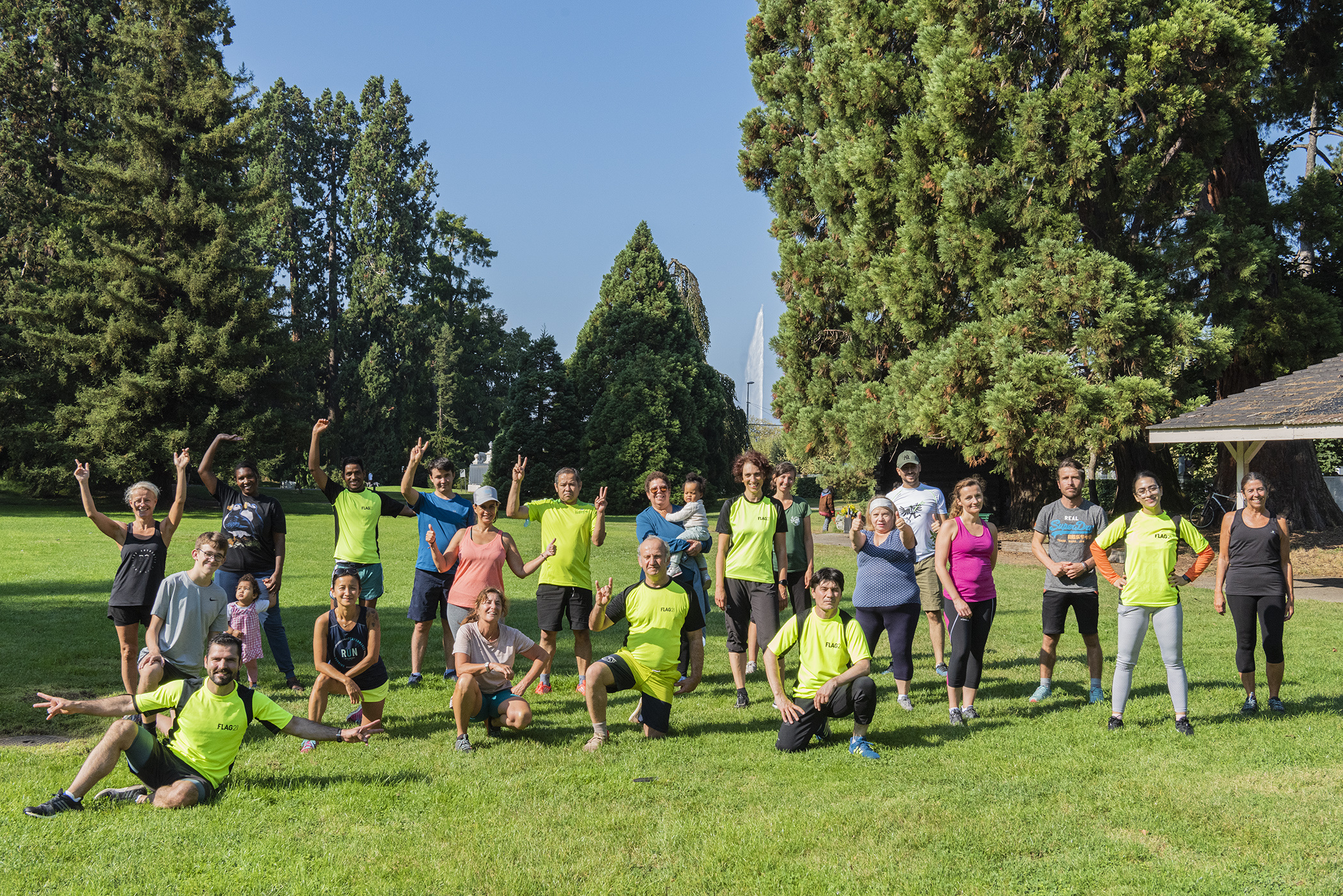 Fernab des üblichen Treibens in den Genfer Strassen und in der Nähe des Jet d'eau, bevorzugen an diesem Samstagmorgen im September viele Freizeitsportler die Ruhe eines Parks. An einem Ende des Parc des Eaux-Vives bildet sich sogar eine kleine Versammlung. Mehrere Dutzend Menschen, die in Gruppen ankommen und meist kanariengelbe T-Shirts mit dem FLAG21-Logo (siehe unten) tragen, bereiten sich auf eine ganz besondere Trainingseinheit vor.