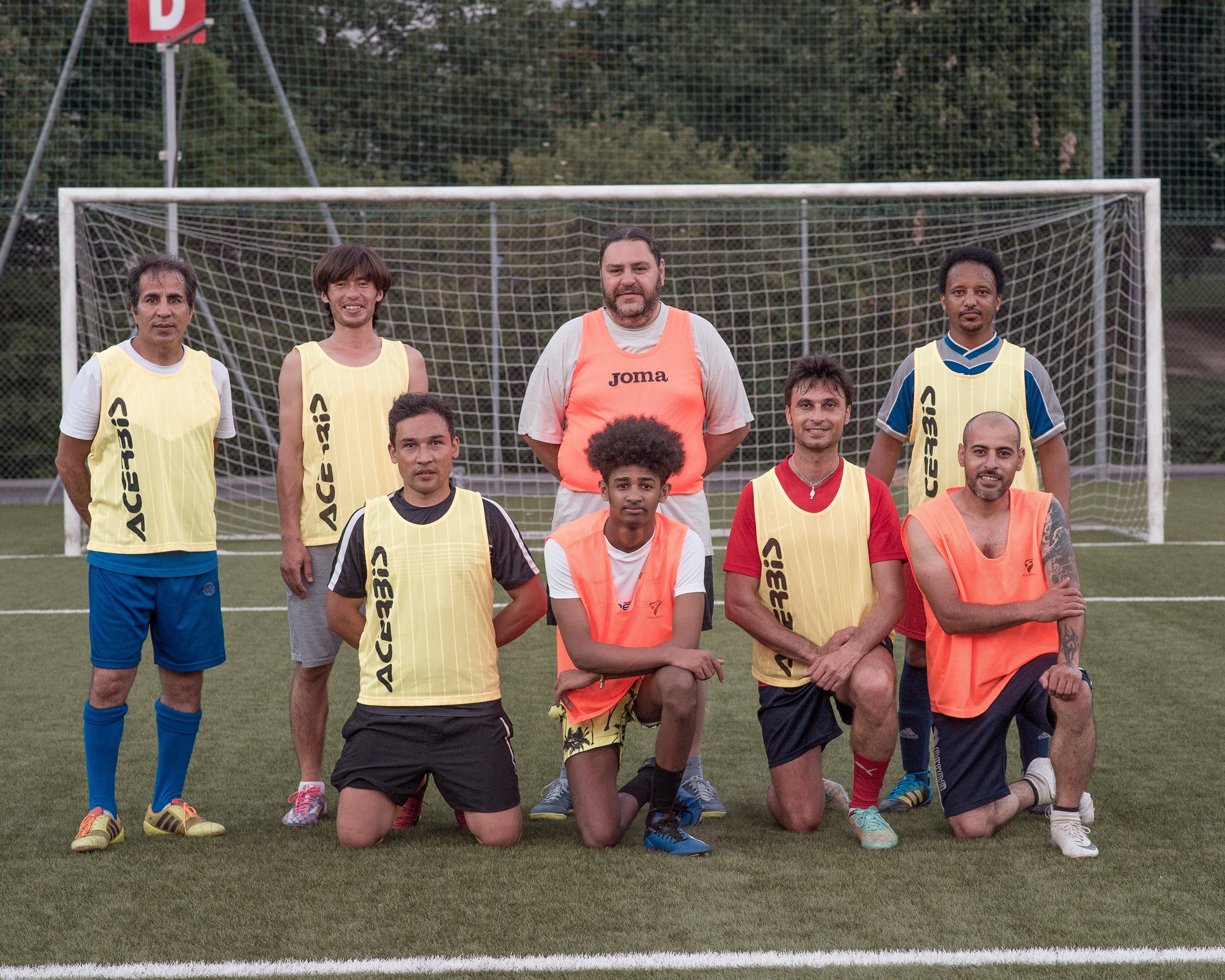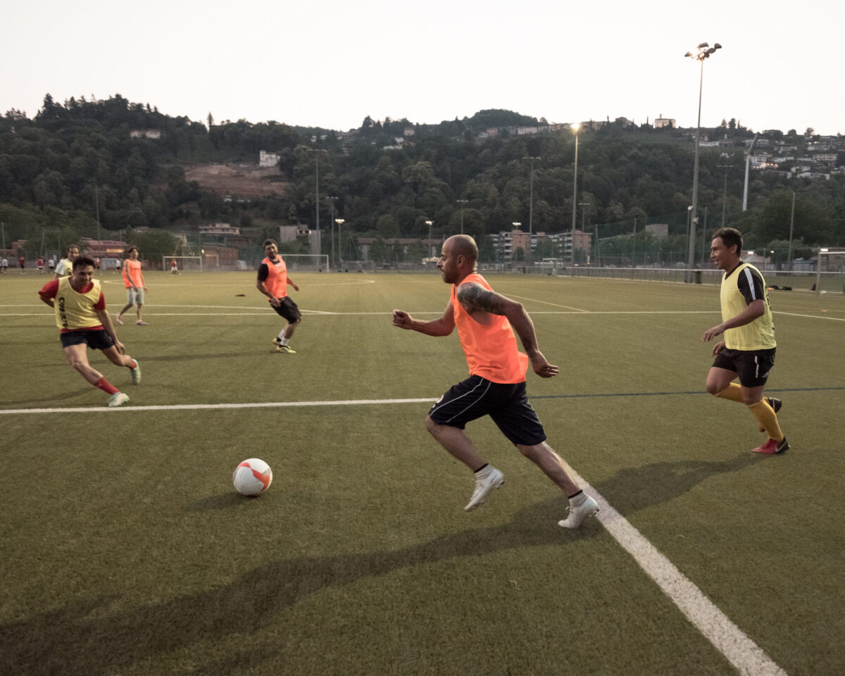 Während einige Nachzügler noch ihre Fussballschuhe schnüren, kicken eine Handvoll Spieler bereits Bälle, um das Aufwärmen zu beenden. Wie jeden Montagabend treffen sich diese Spieler am Rande des Cornaredo-Stadions in Lugano zum Training. Die Mannschaft wurde im Rahmen des Projekts Sotto lo stesso sole (auf Deutsch: unter der gleichen Sonne) zur Integration durch Sport gegründet. Neben diesen Trainingseinheiten nimmt das Team auch regelmässig an zahlreichen Turnieren teil.