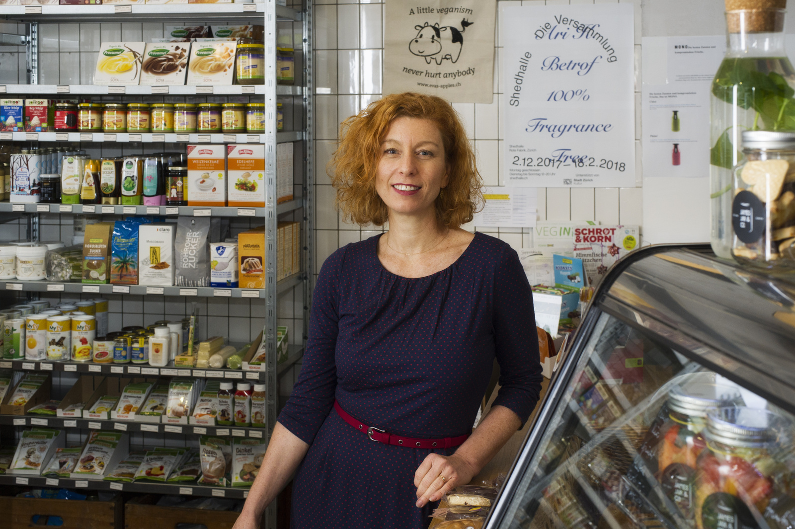Ein grauer Novembermittag am Seeufer von Zürich. Im Industriechic des „Ziegel oh Lac“, einer ehemaligen Seidenweberei, isst Eva Kelemen regelmässig zu Mittag. Ihr Nudelgericht ist vegan und das, was sie nicht isst, lässt sie sich einpacken. Für die 45-Jährige eine Selbstverständlichkeit: Sie setzt sich sowohl für eine tierfreie Ernährung als auch für ressourcensparenden Konsum ein. Beide Aspekte verbindet sie in ihrem Laden „Eva’s Apples“: Dort verkauft sie vegane Waren aller Art – von Fleischalternativen über Schlagcreme bis hin zu Kosmetikartikeln. Wenn immer möglich, verzichtet sie dabei auf Verpackungen. So können sich ihre Kunden zum Beispiel Nudeln, Trocken- oder Hülsenfrüchte aus Spendern in Mehrweggläser abfüllen.