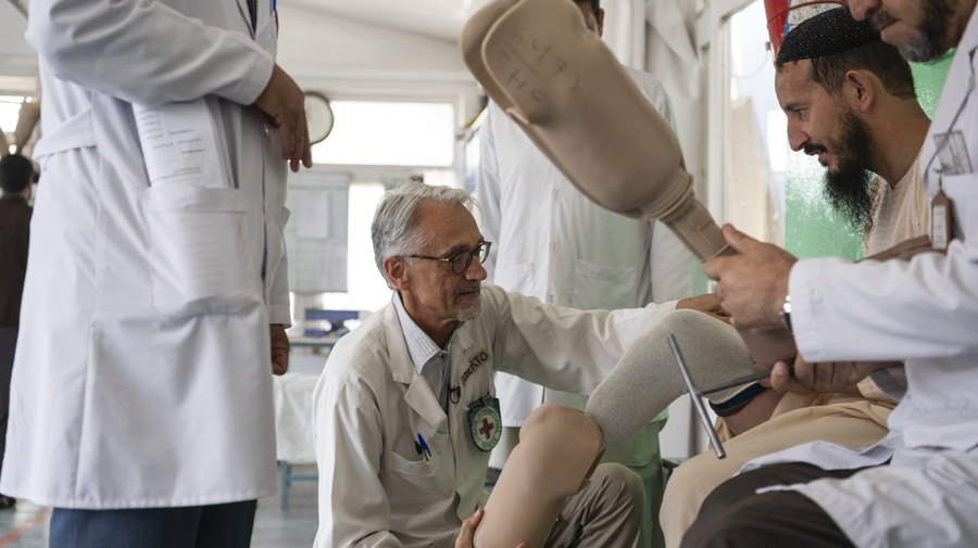 Alberto Cairo是阿富汗的一位物理治疗师,也是红十字国际骨科项目委员会的负责人。近30年来,他致力于为受伤的阿富汗人群免费提供假肢并帮助这些患者寻找工作机会。© UNHCR/Claire Thomas