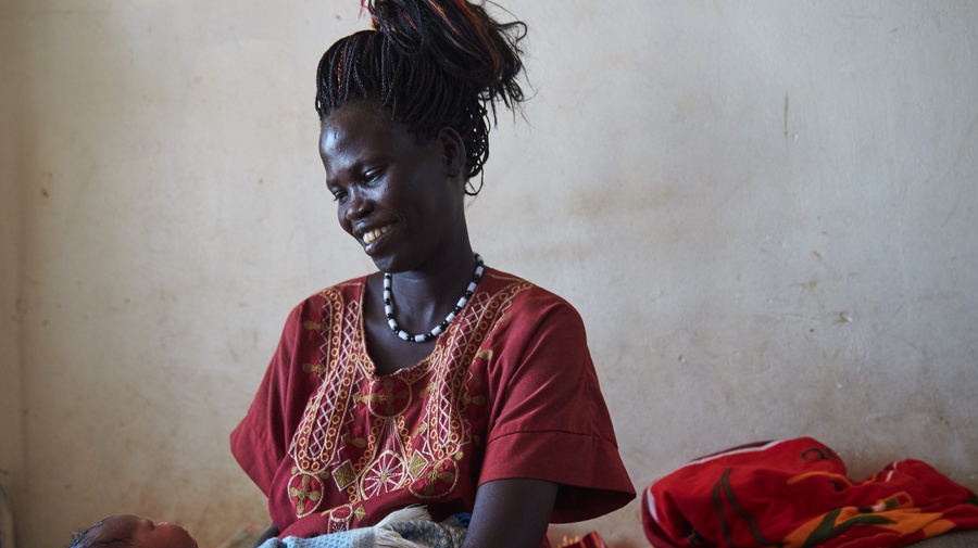 约旦公主Sarah Zeid探访了在南苏丹马班县难民营的Bunj医院,一位母亲抱着刚出生的孩子。© UNHCR/Jan Møller Hansen