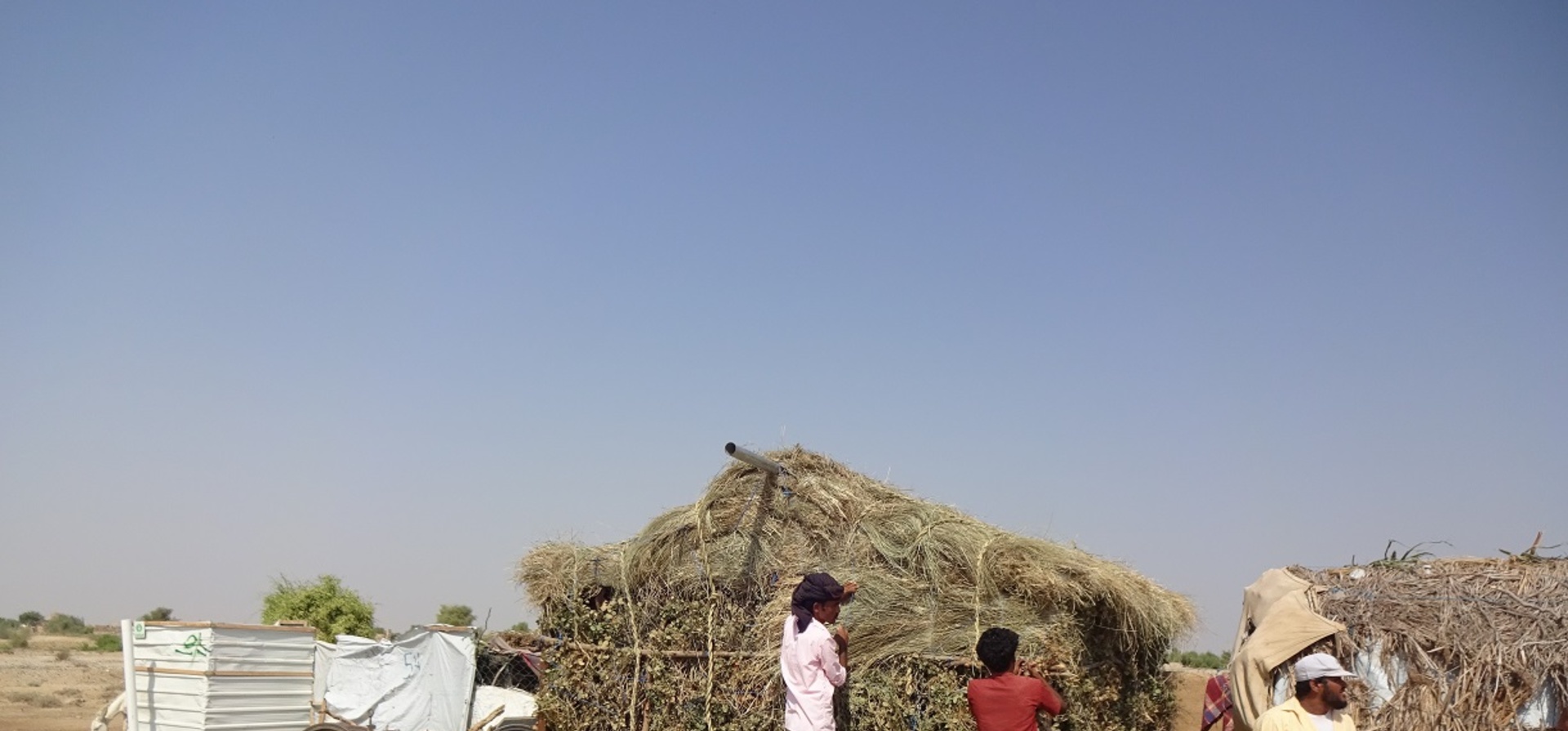 也门境内流离失所者在位于西北部地区阿布斯镇,用天然材料建造生态小屋。© UNHCR/Abdul Rhman Al Ansi