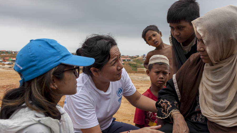 联合国难民署的同事 Sarah Jabin(左),和Jacqueline Julca (右)在孟加拉国协助难民重新安置。© UNHCR/Patrick Brown
