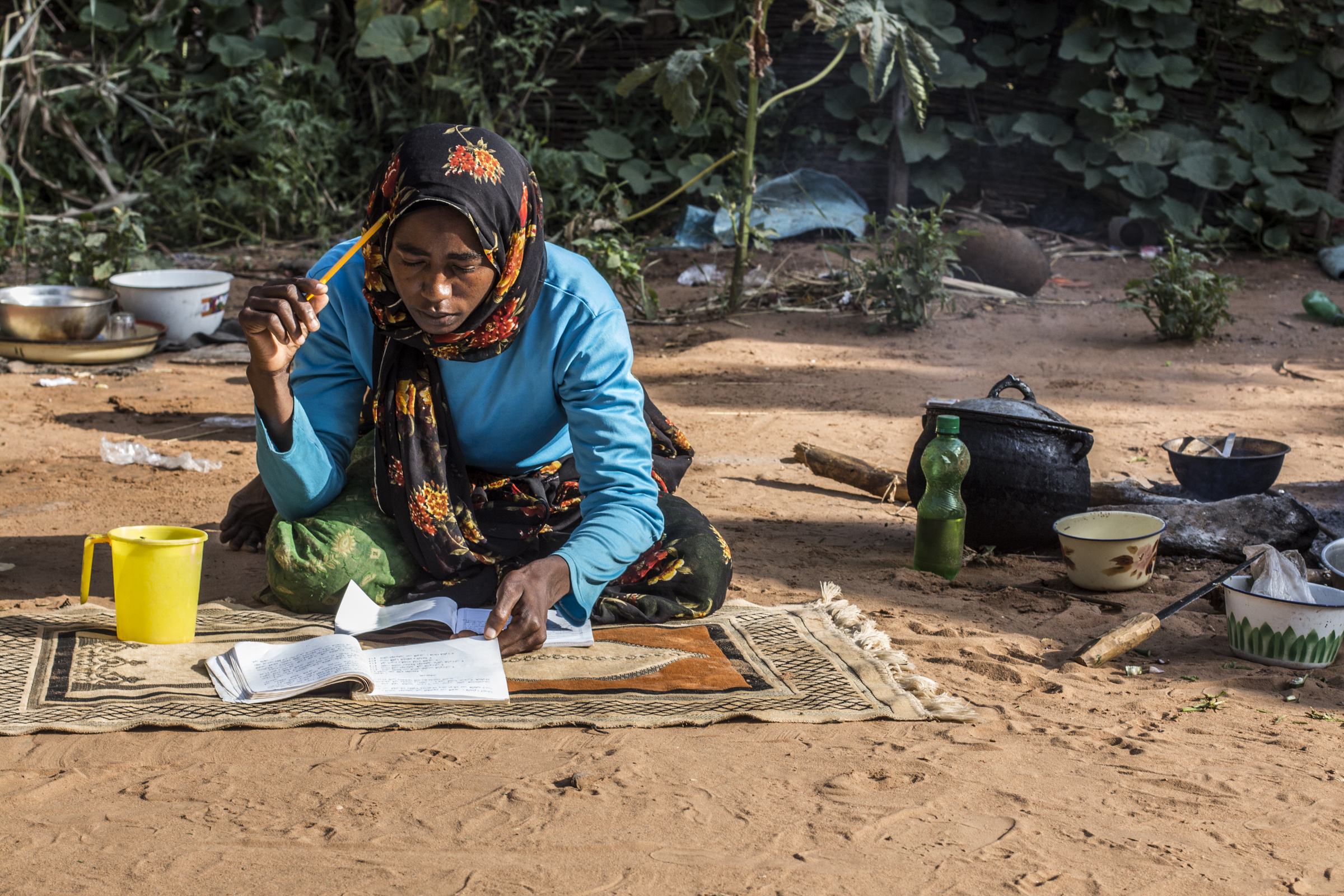 她尝试了好几次才通过第一次考试,也花了很长时间达到小学毕业的水平。但是,当她进入中学时,她的女儿卡蒂贾(Khadija)15岁。她们在同一个班级,在功课上互相帮助。