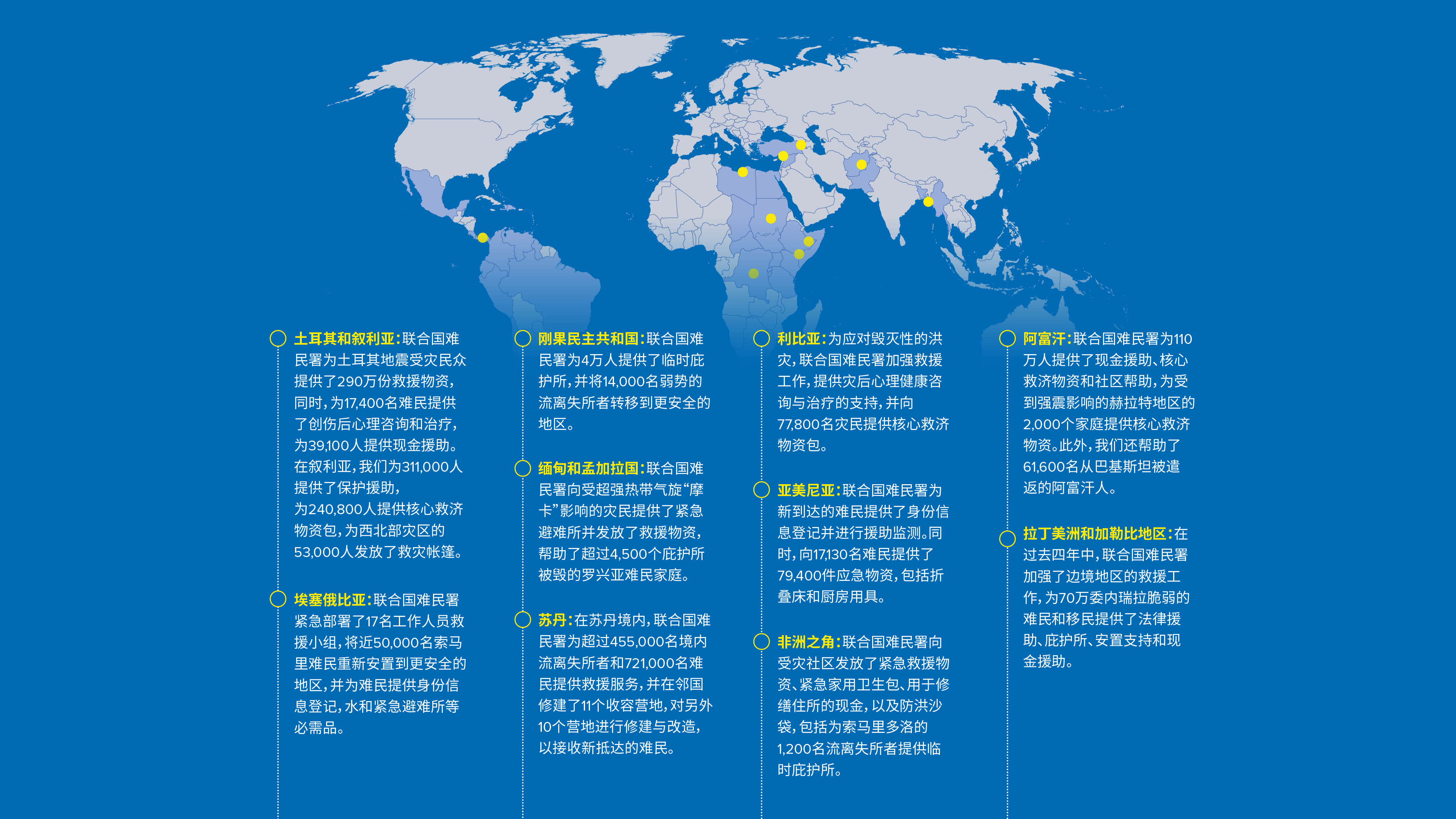 在这一年里,我们见证了土叙地震导致数百万人被迫流离失所,全球各地多重危机叠加,尚未解决的人道主义危机不断加深,新的紧急情况持续涌现。