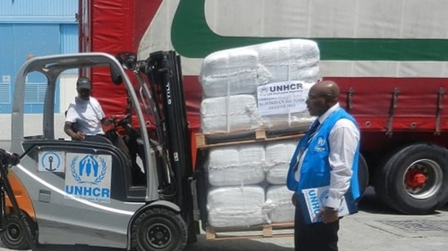 约旦安曼,8月15日 – 联合国难民署的首33辆货车已于星期四,运载数量庞大的救援物资物由难民署于杜拜的仓库出发,为叙利亚的流离失所者提供支援。