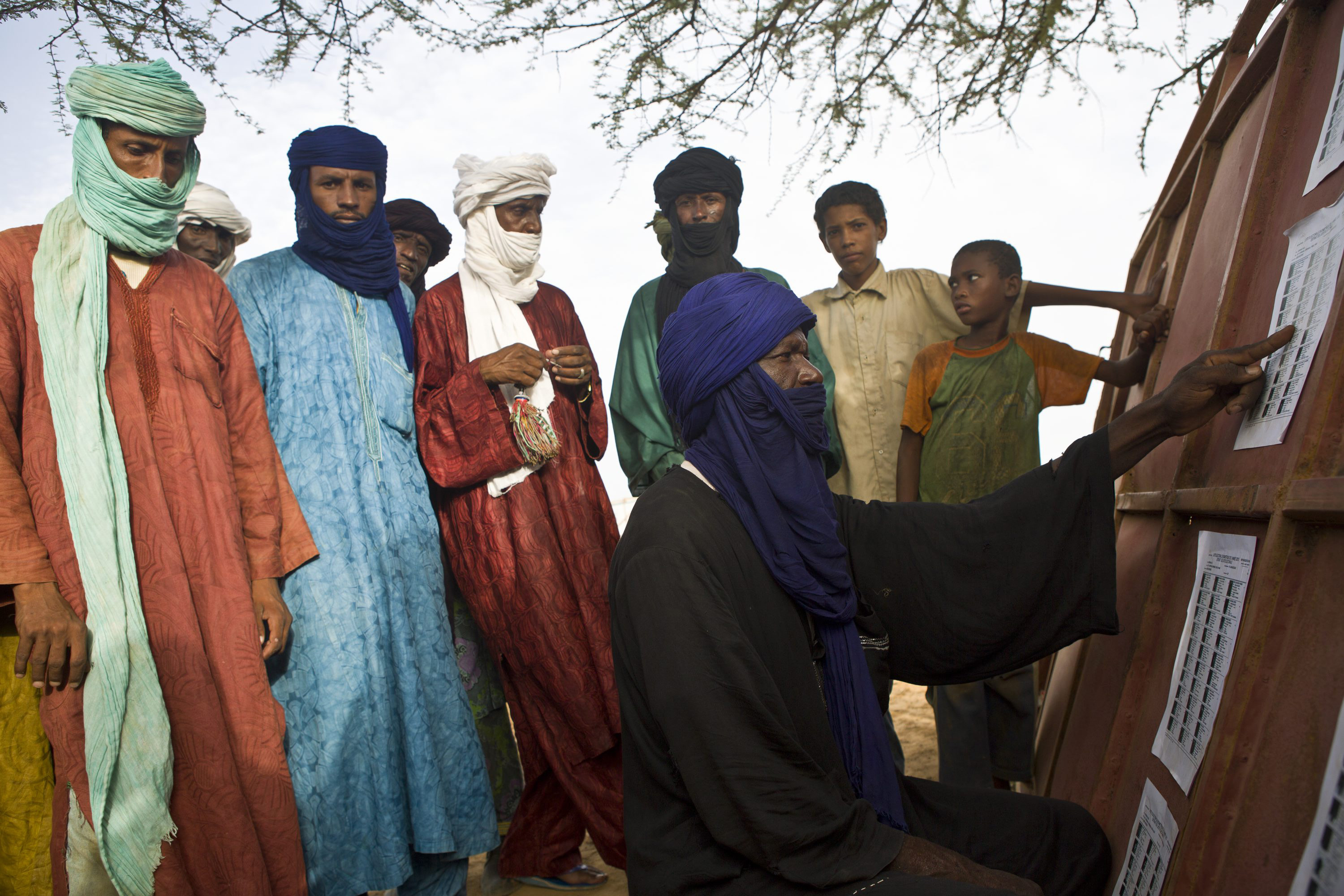 一些决心投票的难民直接前往马里收集他们的NINA卡 - 像Jarrou Ag Ahmed,他于二零一二年一月与妻子和九名子女由北马里Gossi逃至布基纳法索。