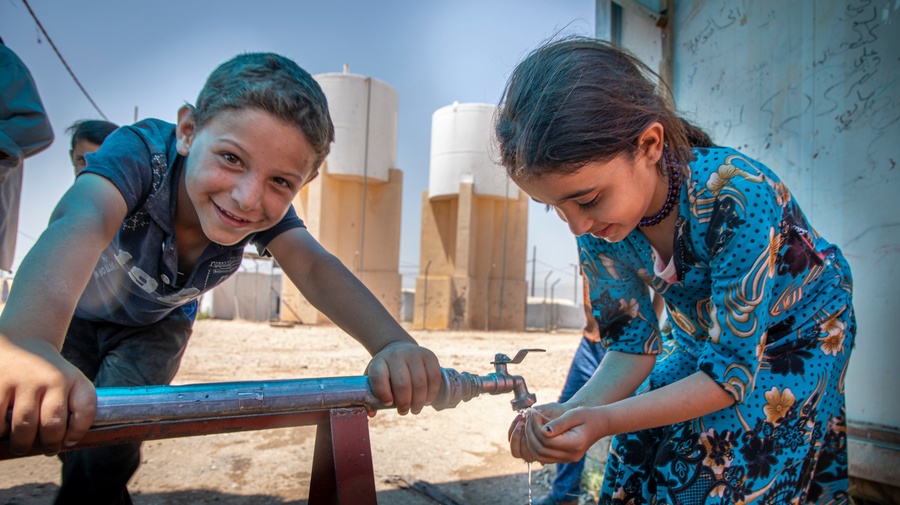 在伊拉克,联合国难民署在用水困难地区为难民提供清洁水资源,以应对 2019冠状病毒病疫情。© UNHCR/Rasheed Hussein Rasheed