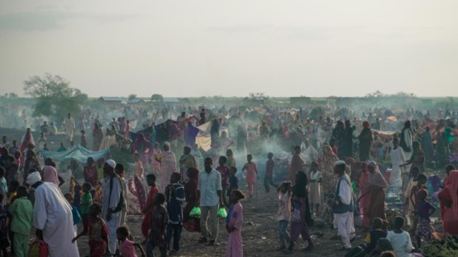 被迫逃离苏丹冲突的难民抵达南苏丹的乔达边境口岸,在这里等着坐车继续前往伦克的中转点。© UNHCR/Ala Kheir