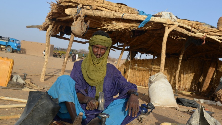 自从阿里八个月前离开位于马边境里Gao省Méneka的家乡后, 40岁的他在Agando难民营一直运用他铁匠的专长,赚取可观的生活费。