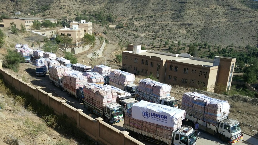 UNHCR and partner Al Amal transporting lifesaving assistance for internally displaced families in Hajjah Governorate. ©UNHCR/Al-Amal/Moeen