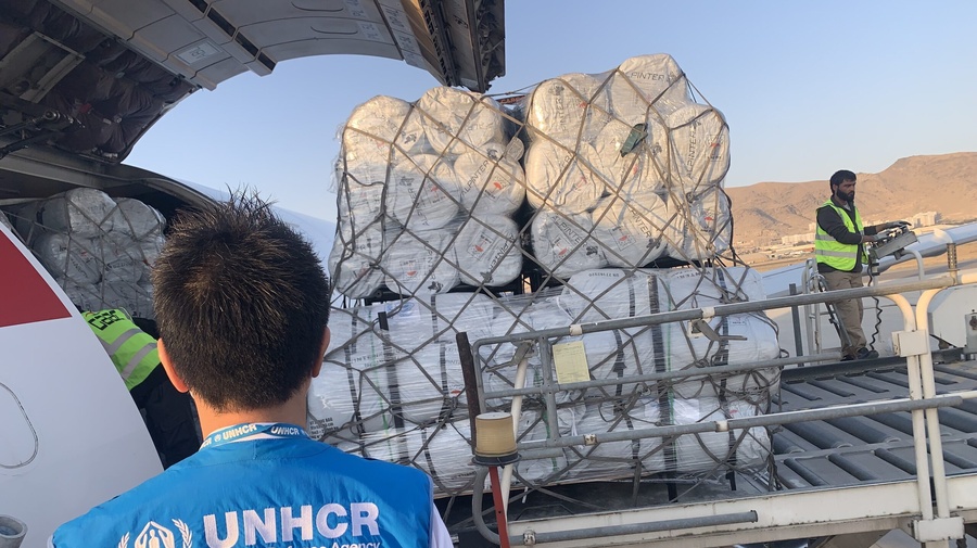 今天下午,一架载有联合国难民署冬季救济物资的飞机将抵达阿富汗喀布尔,这批物资来自联合国难民署在迪拜的全球仓库。