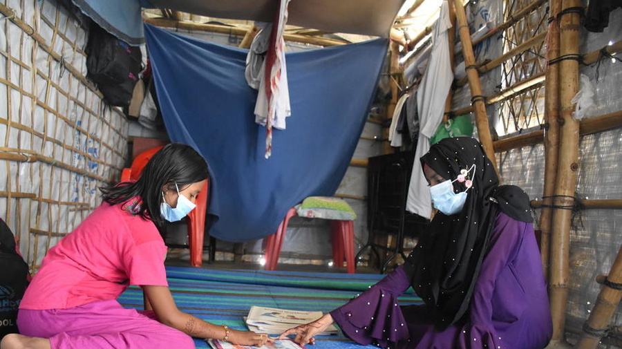 女孩在孟加拉国的科克斯巴扎尔的难民营里学习。 © UNHCR/Iffath Yeasmine