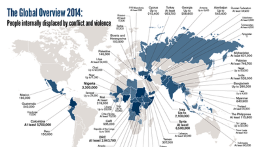 Σήμερα, το IDMC, μέρος του Νορβηγικού Συμβουλίου για τους Πρόσφυγες (NRC), παρουσίασε την Παγκόσμια Επισκόπηση 2014, στον Ο.Η.Ε. στη Γενεύη, μαζί με την Ύπατη Αρμοστεία του ΟΗΕ για τους Πρόσφυγες (UNHCR). Η έκθεση, η οποία αναφέρεται στον εσωτερικό εκτοπισμό για το 2013, επισημαίνει ότι ένα 63% των 33,3 εκατομμυρίων εσωτερικά εκτοπισμένων (IDPs) που αναφέρθηκαν σε όλο τον κόσμο, προέρχονται από μόλις πέντε χώρες: τη Συρία, την Κολομβία, τη Νιγηρία, τη Λαϊκή Δημοκρατία του Κονγκό και το Σουδάν. Η έκθεση συμπεριλαμβάνει για πρώτη φορά στοιχεία για τη Νιγηρία, και καταγράφει ότι 3,3 εκατομμύρια Νιγηριανοί έχουν εκτοπιστεί λόγω των συγκρούσεων.