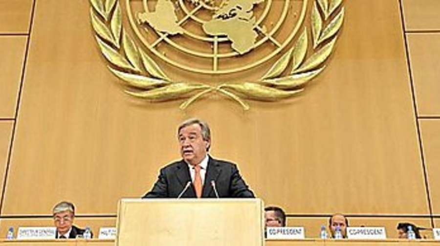 Ο Ύπατος Αρμοστής του ΟΗΕ για τους Πρόσφυγες Αντόνιο Γκουτέρες κατά τον εναρκτήριο λόγο του στην Υπουργική Διάσκεψη στη Γενεύη, την Τετάρτη 7 Δεκεμβρίου 2011.