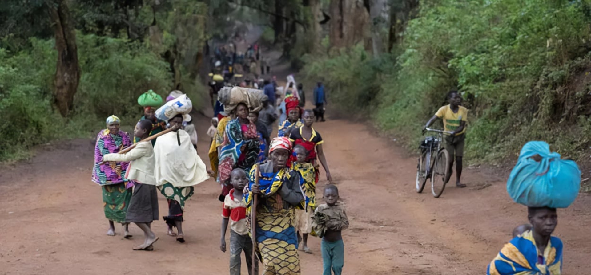 Εκτοπισμένοι άνθρωποι επιστρέφουν περπατώντας νωρίς το πρωί στον καταυλισμό Plain Savo αφού πέρασαν τη νύχτα σε οικογένειες που τους φιλοξένησαν στην κοντινή πόλη Bulé στη Λαϊκή Δημοκρατία του Κονγκό. © UNHCR/Hélène Caux