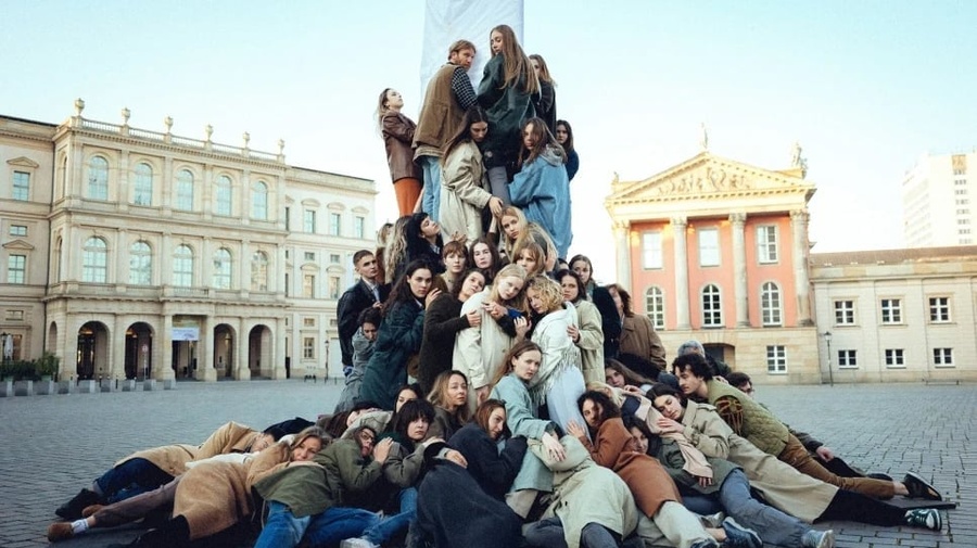 Στο άκουσμα αυτών των φαινομενικά συνηθισμένων ήχων της πόλης οι Ουκρανοί πρόσφυγες σκύβουν κουλουριασμένοι από το φόβο ή τρέχουν για να σωθούν, καθώς ζωντανεύουν τρομακτικές αναμνήσεις. Η δράση ολοκληρώνεται με μια δραματική σκηνή σε μια άδεια πλατεία του Βερολίνου, όπου οι πρόσφυγες σχηματίζουν το σχήμα ενός δέντρου γερά ριζωμένου στη γη από την αγκαλιά δεκάδων ανθρώπων.