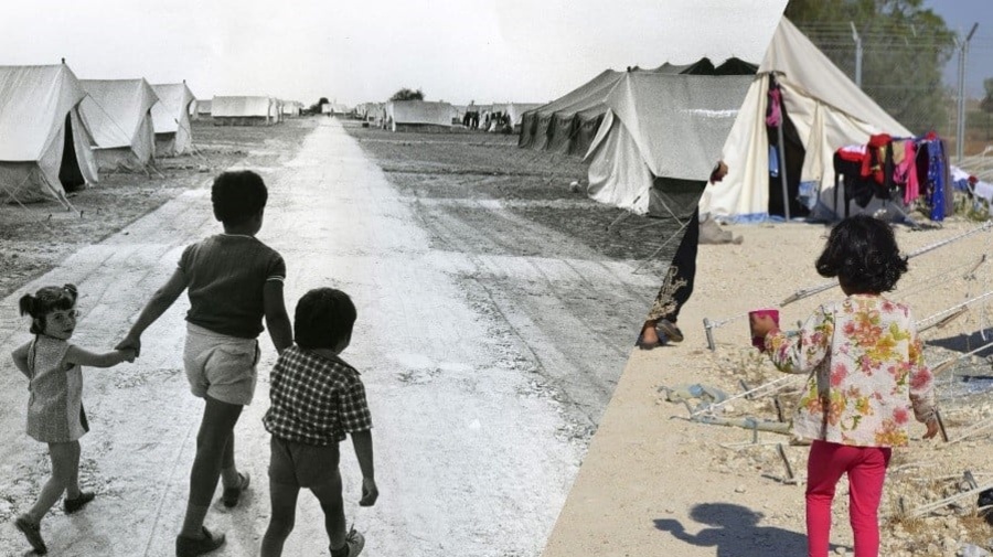 Αντιπαραβάλλοντας φωτογραφίες εκτοπισμένων Κυπρίων το 1974 με φωτογραφίες Σύρων προσφύγων στον προσωρινό καταυλισμό στην Κοκκινοτριμιθιά, η δημοσιογράφος θυμίζει ότι οι ανάγκες και οι επιθυμίες των ανθρώπων που αναγκάζονται να εγκαταλείψουν τα σπίτια τους λόγω του πολέμου και των διώξεων παραμένουν διαχρονικά οι ίδιες.