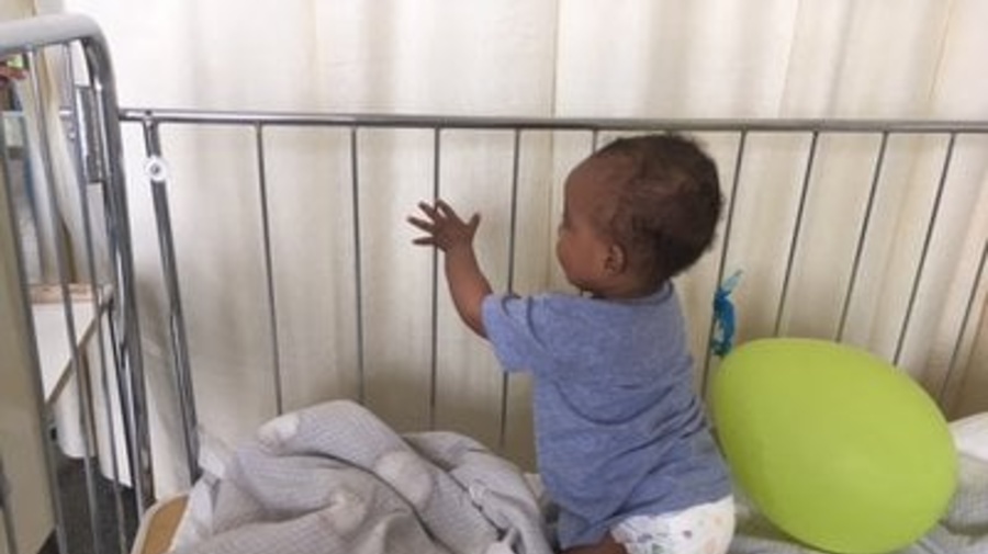 Ο ‘Αμπτι* μόλις 11 μηνών παίζει αμέριμνος στην κούνια του Μακάρειου νοσοκομείου όπου εισήλθε σε κωματώδη κατάσταση το πρωί της περασμένης Πέμπτης. Η κατάστασή του ήταν κρίσιμη, ευτυχώς όμως σταθεροποιήθηκε.
