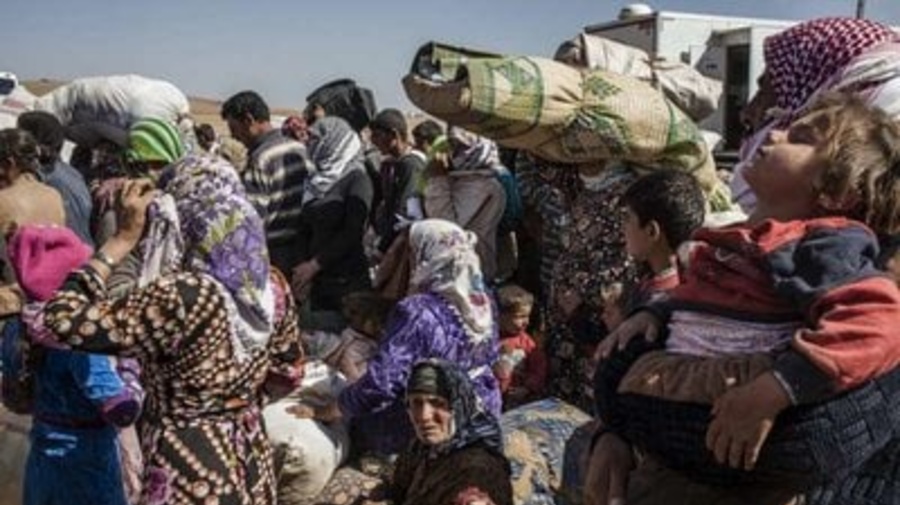 Πρόσφυγες που διέφυγαν από το Κομπάνι της Συρίας πέρασαν τα σύνορα στην Τουρκία και περιμένουν να επιβιβαστούν σε λεωφορεία τον Σεπτέμβριο του 2014. © UNHCR/I. Prickett
