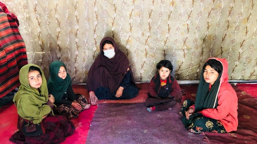Chinar Gul with four of her five children. The family have been relying on food gifts from neighbours since the start of the pandemic. © UNHCR/Lima Haidari