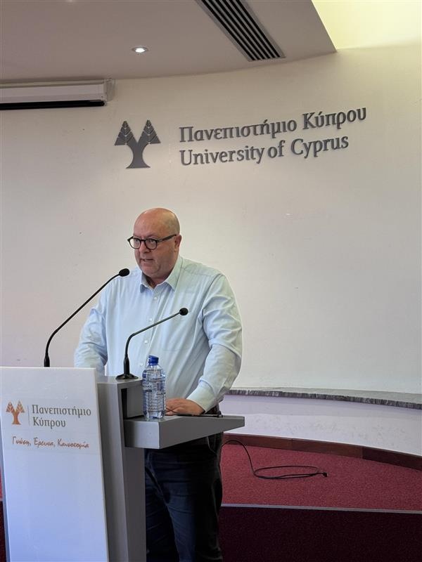 The Rector of the University of Cyprus, Tasos Christofides, welcomed the panel and the audience, noting the importance of the topic at hand. He emphasised the need to integrate refugees and asylum-seekers and the value of their inclusion and participation in society. He stated that language learning programmes form an essential component in any integration planning.