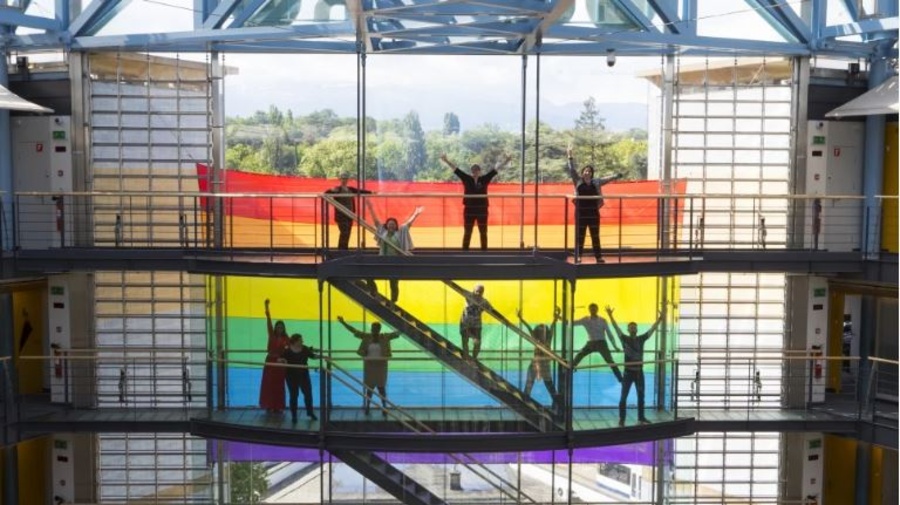 UNHCR staff and partners mark International Day Against Homophobia, Transphobia and Biphobia (IDAHOTB) at the agency’s Geneva office on 17 May 2020. © UNHCR/Susan Hopper