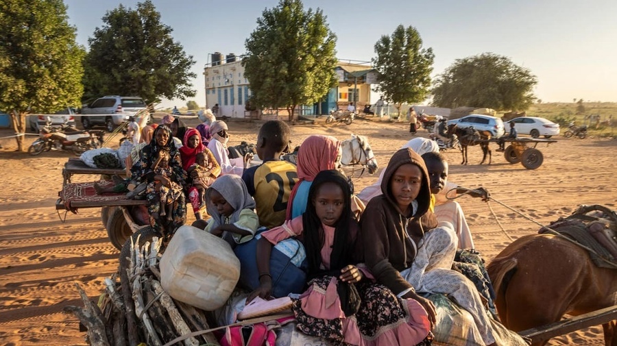 A Sudanese family arrives at the border town of Adre in Chad in October 2024 after fleeing violence in Sudan's Darfur region. © UNHCR/Andrew McConnell