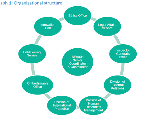 UNHCR verfügt nun über ein breit aufgestelltes Team mit weltweiter Zuständigkeit. Dazu gehören unter anderem das Büro des Generalinspektors, das Ethikbüro, der juristische und der psycho-soziale Dienst. Seit März 2018 leitet eine Koordinatorin alle UNHCR-Maßnahmen gegen sexuelle Ausbeutung, Missbrauch und Belästigung.