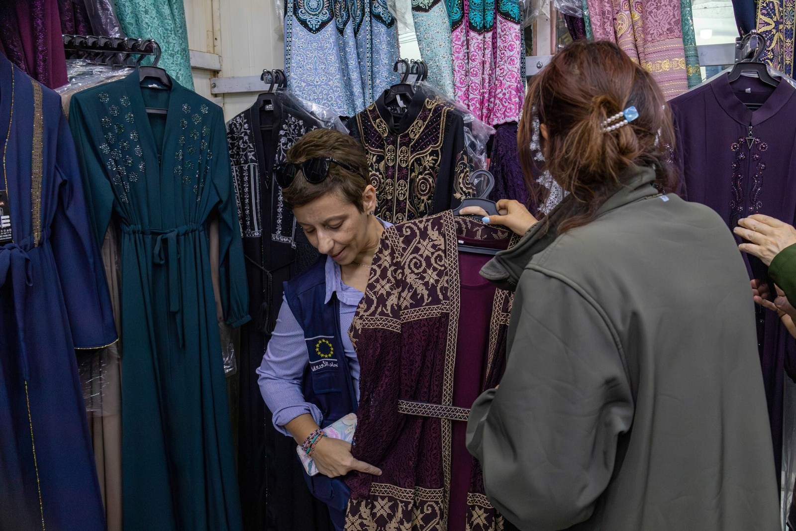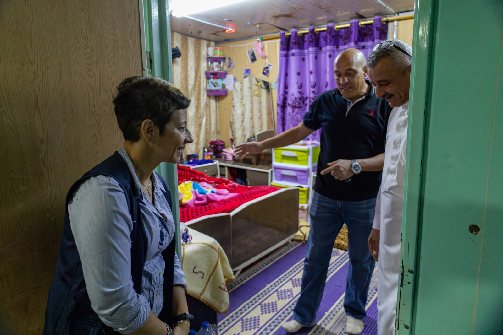 Wie “wichtig Resilienz ist” erkannte Botschafterin Hadjitheodosiou nachdem sie mit Hisham Srahan (54), seiner Frau und ihren Kindern und Enkelkindern in dem Container der Familie erst zu Abend gegessen hatte und am nächsten Morgen zum Frühstück wieder gekommen war. Die Familie musste vor zehn Jahren nach Jordanien fliehen. Herr Srahan, der früher mehrere Süßwarengeschäfte in Syrien besaß, betreibt jetzt einen Lebensmittelladen in dem Flüchtlingscamp. Sein Sohn Hussein (27), der inzwischen selbst drei Kinder hat, nutzt seine Arbeitserlaubnis, um auf nahegelegenen Bauernhöfen etwas Geld zu verdienen.
