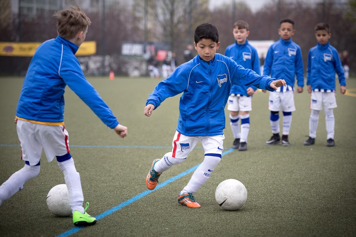 Auch jetzt auf dem kalten Bolzplatz im Berliner Norden sind die großen Vorbilder Ronaldo, Messi und Co. überall präsent. Die Jungs sind aufgeregt und voller Vorfreude, dass es gleich losgeht, dennoch sind sie erstaunlich routiniert. Ahmad steht von Anfang an auf dem Platz und strahlt über beide Ohren. Beobachtet man ihn fallen sofort seine große Begeisterung und seine Fähigkeiten auf. Er dribbelt gekonnt über den Platz und holt beim Schuss aufs Tor eine Ecke für die Mannschaft raus. Von Ahmads Talent sind auch die Trainer überzeugt: „Er hat einen starken linken Fuß, eine gute Technik und Ehrgeiz“, sagt Hertha-Jugendtrainer Carsten Hund.