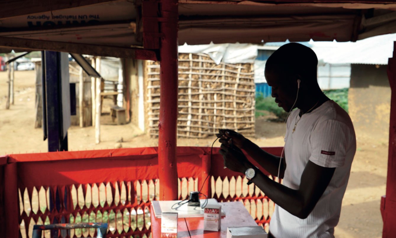 Tom Remo, a South Sudanese refugee and businessman, at his mobile phone shop at Rhino Camp Settlement, northern Uganda, where internet connectivity is changing lives. ©UNHCR/Michele Sibiloni