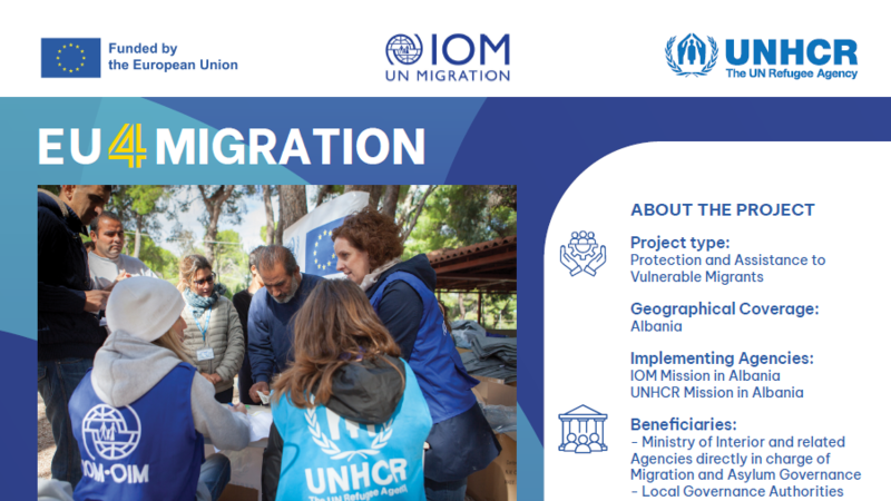 EU4Migration is a four-year initiative (January 2025–December 2028) funded by the European Union (EU) and implemented by UNHCR, the UN Refugee Agency and IOM, the International Organization for Migration, in close partnership with the Government of Albania. The project aims to strengthen Albania’s asylum and migration systems in line with EU and international standards, supporting the country’s EU integration process.